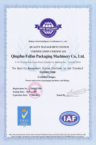 祝賀青島非凡包裝機(jī)械有限公司順利通過(guò)ISO9001質(zhì)量體系認(rèn)證