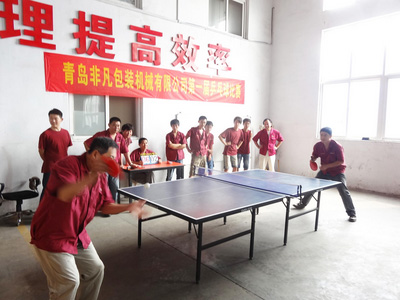 由青島非凡包裝機(jī)械有限公司舉辦的第一屆乒乓球比賽于2013年9月30日勝利閉幕,本次比賽共8支代表隊(duì)參加團(tuán)體賽,20多名職工參加個(gè)人賽,充分展現(xiàn)了我公司職工爭(zhēng)創(chuàng)一流、勇攀高峰的精神風(fēng)貌,是公司職工乒乓球愛好者展示技藝、切磋球技的一次交流盛會(huì)。